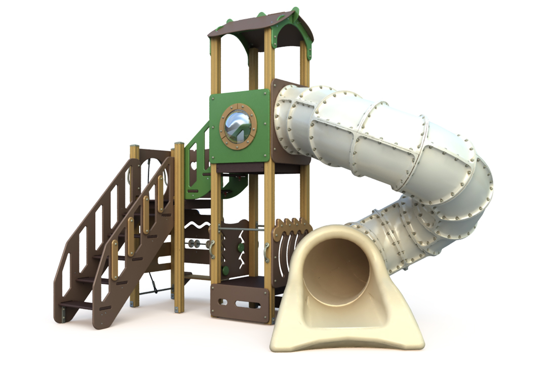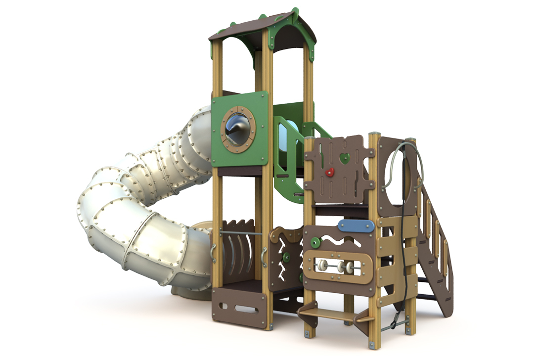 горка-тоннель, заглушки, иллюминатор, канат, клееный брус, краска, ламинированная ФСФ фанера, металл, оцинкованный крепеж, ручки, счеты, ФСФ фанера |